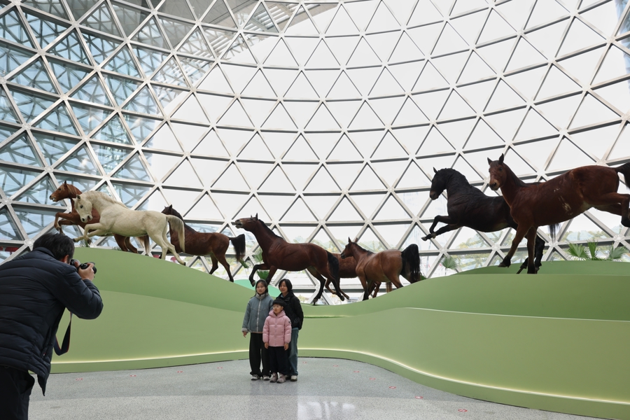 展品标本除外,特展还呈现了一匹“机械马”,此外展陈更是融入裸眼3D、AI等科技技巧,诞生了多个千里浸式互动展项,让不雅众在可看、可感、可玩中久了清爽马的文化与科学内涵。