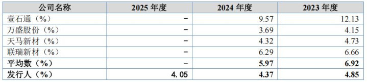 确认期内,金戈新材研发用度远离为1,864.31万元、2,044.92万元和2,160.67万元,主要为职工薪酬和材料费等。公司研发用度占营业收入的比重远离为4.85%、4.37%和4.05%。2023-2024年,公司研发用度率低于同业业公司,主如果壹石通和联瑞新材研发用度率较高。