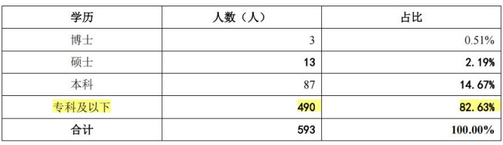 抛弃2025年12月31日,公司领有研发东说念主员78名,占一说念职工东说念主数的13.15%。公司职工的学历全体上清晰较低的状态。