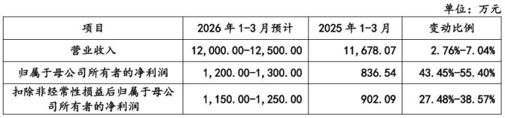金戈新材展望2026年1-3月营业收入约为1.2亿元至1.25亿元,同比变动幅度约为2.76%-7.04%;包摄于母公司扫数者的净利润约为1,200.00万元至1,300.00万元,同比增长幅度约为43.45%-55.40%;包摄于母公司扫数者的扣除非络续性损益后的净利润约为1,150.00万元至1,250.00万元,同比增长幅度约为27.48%-38.57%。