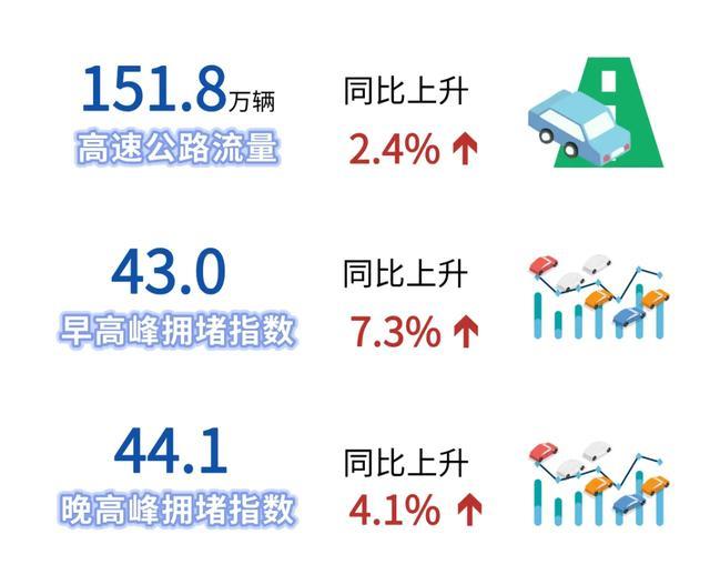 小客车出车率下跌至65%傍边,出行车的出行距离增多,全体交通量小幅增长1%;