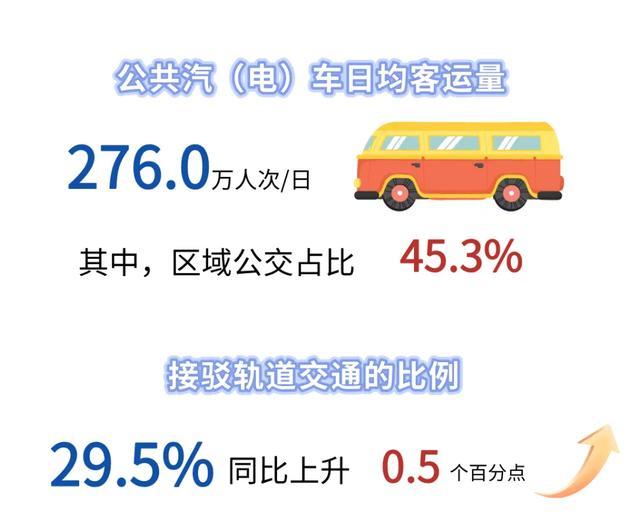 全市群众汽(电)车日均客运量276.0万东说念主次,约29.5%的客流接驳轨说念交通,同比提高0.5个百分点。区域公交廓清日均客运量125.1万东说念主次,占比45.3%,同比提高3.7个百分点。