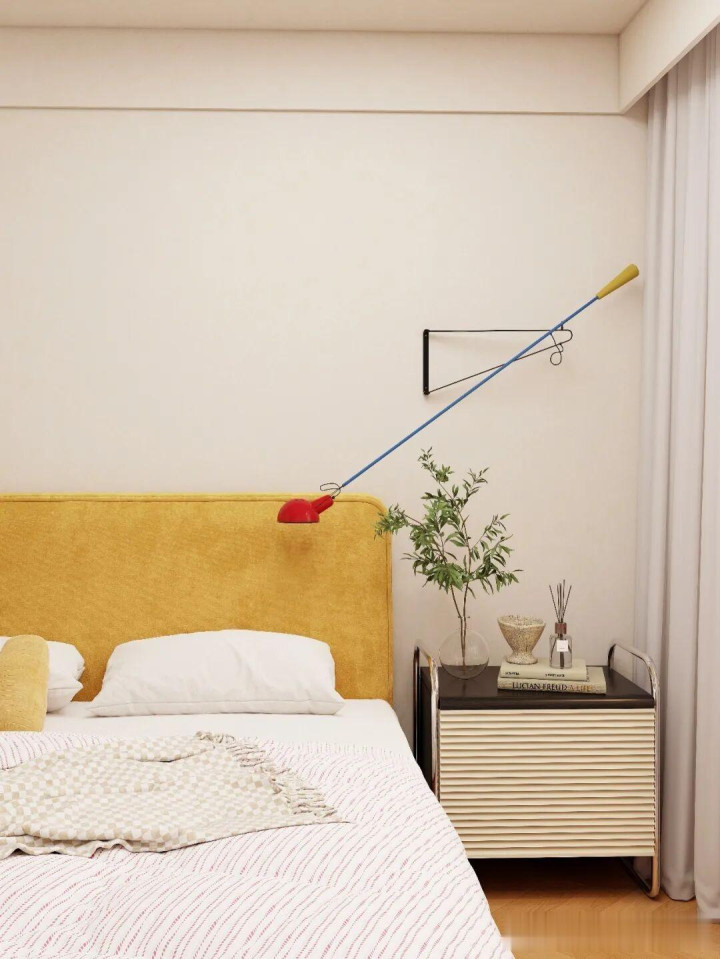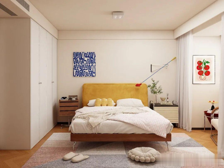 卧室:检朴利落的线条勾画出空间的骨架,圆形、弧形、不规矩的几何元素冲破空间单调,而经心挑选的产物、配饰、灯具,让好意思学与实用完好兼顾。