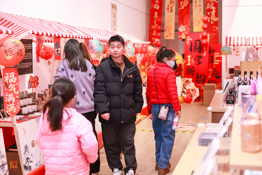 “这个安稳玩偶用手机NFC功能扫一扫,可在线求签,跳出许多新年祝福。”90后冯先生准备囤几个不同造型的“电子年货”送一又友。走进上海24小时和平书院,新揭幕的“国风新次元——新春文创潮玩第一展”诱惑许多市民驻足选购满意的年货伴手礼。