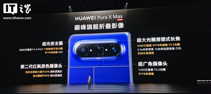 影像方面,华为PuraXMax后置5000万像素超光变主摄、5000万像素超大光圈潜望式长焦、第二代红枫原色录像头和1250万像素超广角录像头。新机还支撑XMAGE智拍、东谈主像精修、3D动态像片等功能。