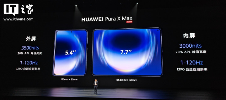 据先容,华为PuraXMax横向阔折叠手机在屏幕方面再次翻新,表里屏均继承了≈√2:1的类纸比例盘算,主打阔感如一。新机外屏尺寸为5.4英寸,支撑3500nits20%APL峰值亮度、1-120HzLTPO自适应刷新率;内屏尺寸7.7英寸,支撑3000nits20%APL峰值亮度、1-120HzLTPO自适应刷新率。