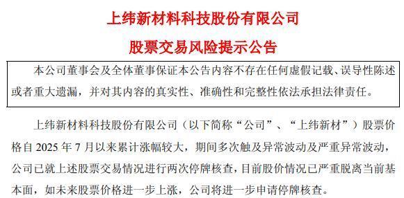 2025年年度涨幅王上纬新材本年连续涨势,公司发布交往风险教唆。