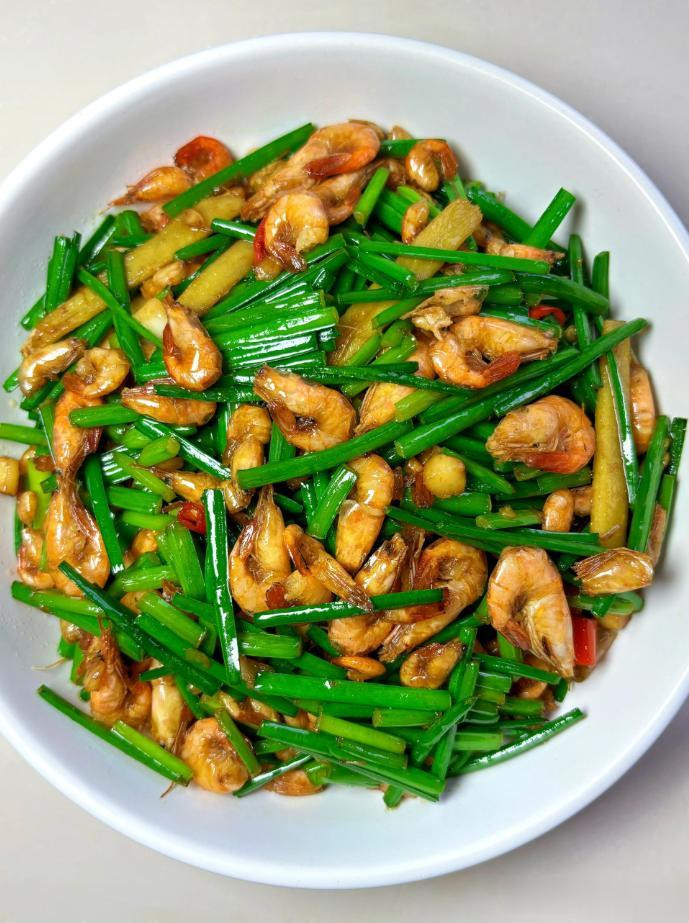 一、韭菜炒河虾——升发阳气的小妙手